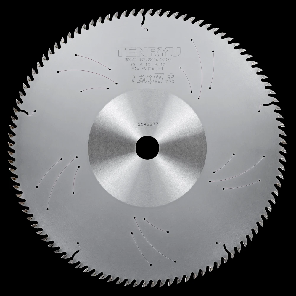 By improving the base metal surface roughness and using a special surface treatment, this saw blade reduces the chips and debris that stick to the blade and reduces cutting resistance.